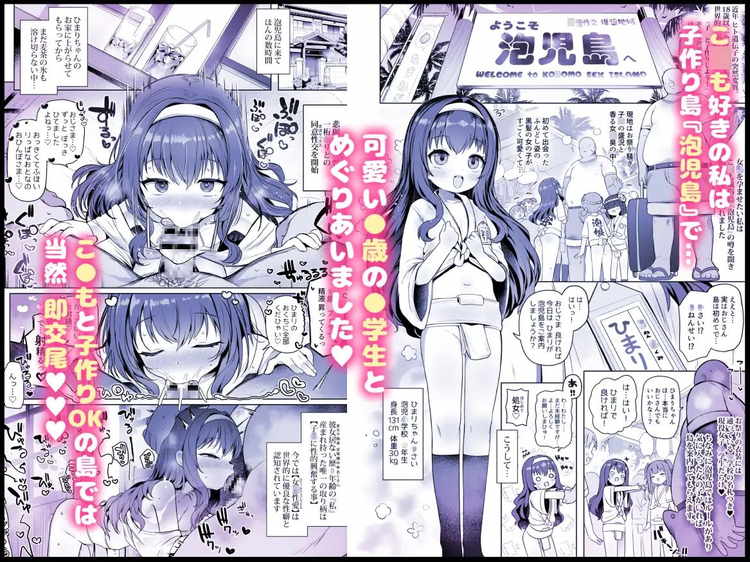 圧巻の体格差・年齢差による種付けセックスが楽しめるエロ漫画。少女好きの変態にとってはまさに夢の島「泡児島」でのお話。未成熟な身体でありながらも大人の子作りセックスを受け止める女の子たち。アナル丸見えのお尻を無邪気に突き出して誘ってくるビッチな娘たちに中出ししまくるストーリー。小さな体を掴んでドチュドチュするのは興奮しそう。
