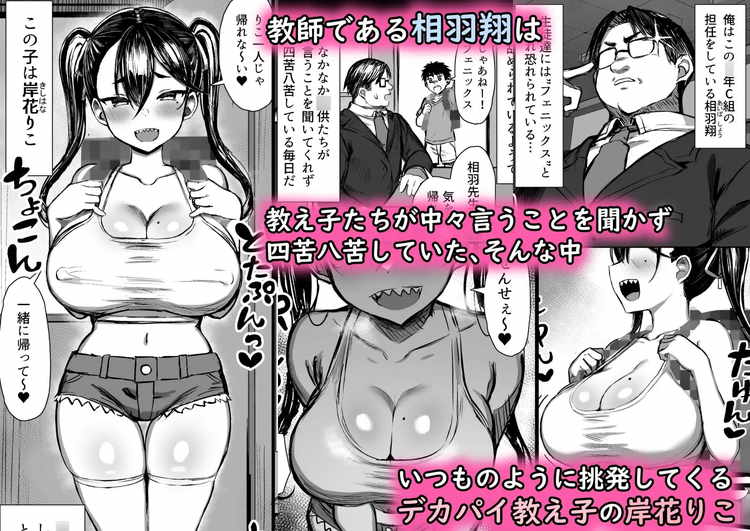 教師を舐め腐ったエロい身体の女子生徒をわからせるエロ同人。パンパンの巨乳にノーブラ乳首、ムチムチの尻に魔性のギザ歯。毎日のように挑発してくるメスガキ・岸花りこについに先生がブチギレ。これが大人のセックスだ。太くて長いギンギンの巨根が生意気なメスガキを絶頂に導く歳の差・体格差エロ同人。人気作品です。