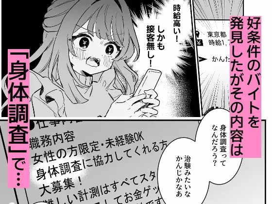 何の仕事をしても上手くこなせないどんくさい女子大生の詩織。そんな彼女が新たに見つけたバイトは「女性限定!未経験OK!身体調査に協力してくれる方大募集!」だった。高時給で接客無しの仕事内容につられていざ応募。しかし、詩織を待っていたのは乳首快楽研究所による乳首感度調査だった。その内容は圧倒的な乳首責めのオンパレード。焦らし、執着、羞恥、ローション…そして絶頂。乳首責め特化エロ同人。人気作品です。