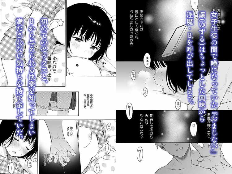 「マヨナカ侵略者」の続編です。おまじないで呼び出した悪魔・淫魔Bに処女を奪われ、初めてのセックスを体験した少女・譲ちゃん。あの快楽と興奮を忘れることができないまま過ごしていたある日、再び淫魔Bと出会える事に。「もう一度して欲しい…」という譲の願いを快く引き受け、あの時よりも刺激的なセックスが始まる。初めてのフェラチオ、尻尾によるクリ責め、中出しセックス…初心な少女は性の快楽を知り、女へと変わってゆく。エッチに興味が湧いてくる年頃の少女の気持ちや、前回同様に体格差セックスが高評価。超人気エロ漫画の第二弾です。