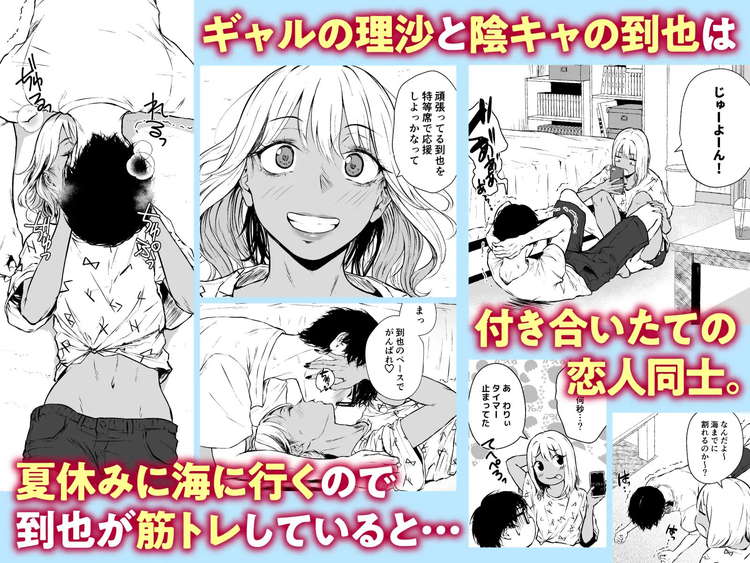 黒ギャル・理佐と陰キャ・到也の夏休みの性生活を描いたエロ同人。付き合いたてということもあってきっかけさえあればヤリまくりの二人。