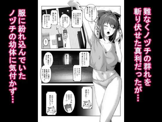天才退魔師と呼ばれている闇無真利。生業である妖魔退治をこなした日、服の中に妖魔・ノヅチが潜んでいることに気づかないまま帰宅してうっかり就寝。ノヅチ二匹は真利の乳首に吸い付き霊力を吸い続けていた。一晩中霊力を吸収されたため変身することができなかった真利はノヅチ二匹におっぱいを吸われながら生活する羽目に。舌先で乳首を転がし、おっぱいに吸い付くノヅチ。ジワジワと快楽に染められてゆく天才退魔師はどうなってしまうのか。母乳あり、触手ありの乳首責め特化エロ同人。