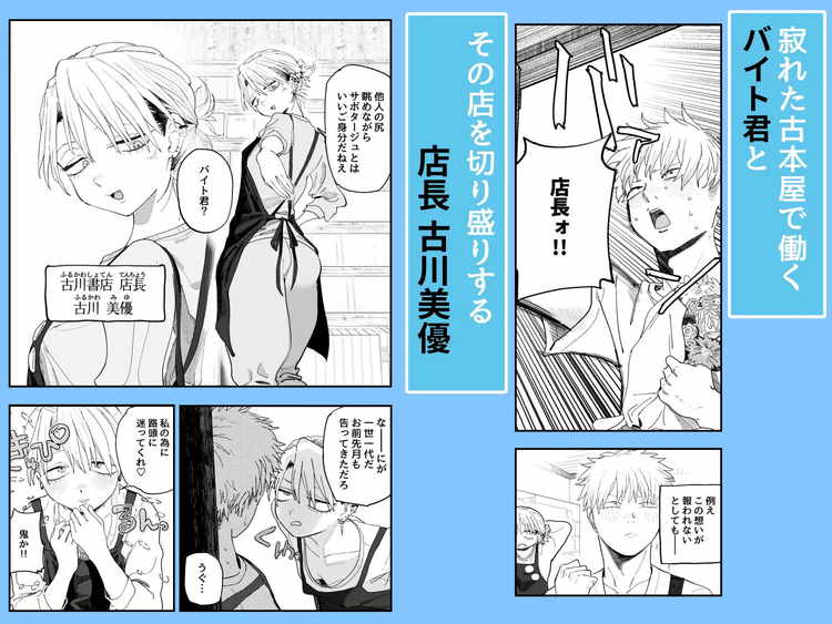 バイト先の店長はパワハラ気質でダウナー系の女性。気が強くて口が悪い店長に恋をするバイト君が、とんでもない契約によって搾り取られて悦ぶエロ同人。エッチなことをする代わりに給料を減らすという悪魔のような契約に承諾し、セックスを夢見て奮闘。もちろん、バイトの給料1カ月分カットなのでセックスさせてくれる店長。念願だった大きなお尻を突きまくって夢をかなえています。こういう闇を抱えてそうな女性はエロい。